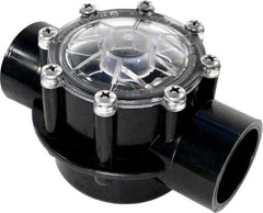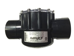 This is a Corrosion Resistant HydroSeal Serviceable Check Valve with 2 Inch Socket x 2-1/2 Inch Spigot. This model has a thread-on style and is constructed of black CPVC. It has a 2 pound spring with a max flow rate of 100 GPMs and 50 max PSI. Hydroseal Corrosion Resistant check valves are a durable, pro-level option that stand up to harsh chemical conditions. The best solution for systems with a chlorinator, brominator or salt generator installed.Hydroseal Serviceable Check Valves are designed for demanding pool and spa applications. They have a dependable quality with a union nut for easy removal and service, clear lid for easy inspection, and high temp CPVC Body with longer sockets for better glue joints. The Check Valve is reversible while Installed and the silicone check seal never requires lubrication. This model has been awarded the NSF International seal.