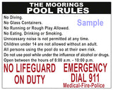 This is a custom pool sign measuring 30 x 24 inches on white styrene plastic. After your order is submitted, you will be asked for a final version of your custom sign in a word document. All of our custom pool signs are professional quality and predrilled for easy hanging. Each sign is printed using our high-quality weather resistant-sun resistant inks.If you are interested in obtaining a quote for a size not listed, you can do so by clicking on "Contact Us" at the bottom and completing the Helpdesk Form.