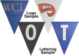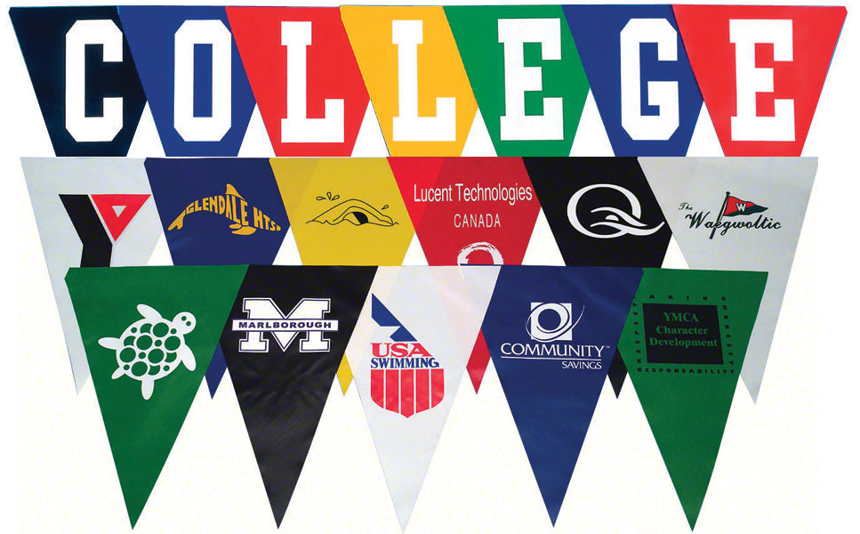 Our new line of custom backstroke flags are 12 x 18 inches, the largest size the NCAA allows. These top quality vinyl backstroke flags are ideal for competitive swim teams. Made from a high quality vinyl material, mounting is very easy using a nylon braided cord or a 3/16 stainless steel cable (each sold separately). Flags are sold individually and shipped unassembled to allow for customization on site.You can have your team name or logo printed on your backstroke flags to show the competition who you are! Flags with lettering or numbers and Custom printed logo flags are sold separately. We can print any logo, school mascot, picture, etc., on any of our flags.
