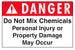 Do Not Mix Chemicals Personal Injury or Property Damage May Occur