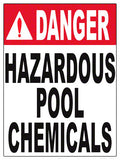Pool Chemical signs are essential for safety purposes. Many states require specific pool chemical signs be posted in the Chemical Storage area for safety reasons. This Danger Hazardous Chemicals sign is a requirement in the state of Indiana but can be used by any facility needing to post to keep everyone safe.