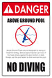 Danger No Diving Above Ground Pool Sign - 12 x 18 Inches on Styrene Plastic