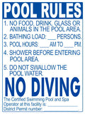District of Columbia Pool Rules for Diving Pools Sign - 18 x 24 Inches on Styrene Plastic (Customize or Leave Blank)