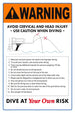 Dive at Your Own Risk Instruction Warning Sign - 12 x 18 Inches on Heavy-Duty Aluminum