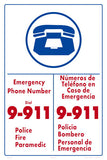 Emergency Phone Number 9-911 Sign in English/Spanish - 12 x 18 Inches on Styrene Plastic