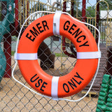 This is an orange pre-printed 30 inch U.S.C.G. ring buoy with Emergency Use Only printed in black.Our life ring buoys are manufactured under strict codes and the supervision of the United States Coast Guard. They have solid, closed-cell plastic throughout. Soft and resilient to the touch yet are almost indestructible! The Soft-Tex surface resists weather and temperature extremes and will not rot or mildew.