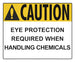 Pool Chemical signs are essential for safety purposes. Many states require specific pool chemical signs be posted in the Chemical Storage area for safety reasons. This Caution Eye Protection Required sign can be posted by any facility in their chemical room where needed.