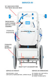 The Service-21 units mount securely to any trailer or 2 inch trailer hitch receiver for safe transport from pool-to-pool. Lightweight and easy to maneuver, service units can transport everything you need in one trip.