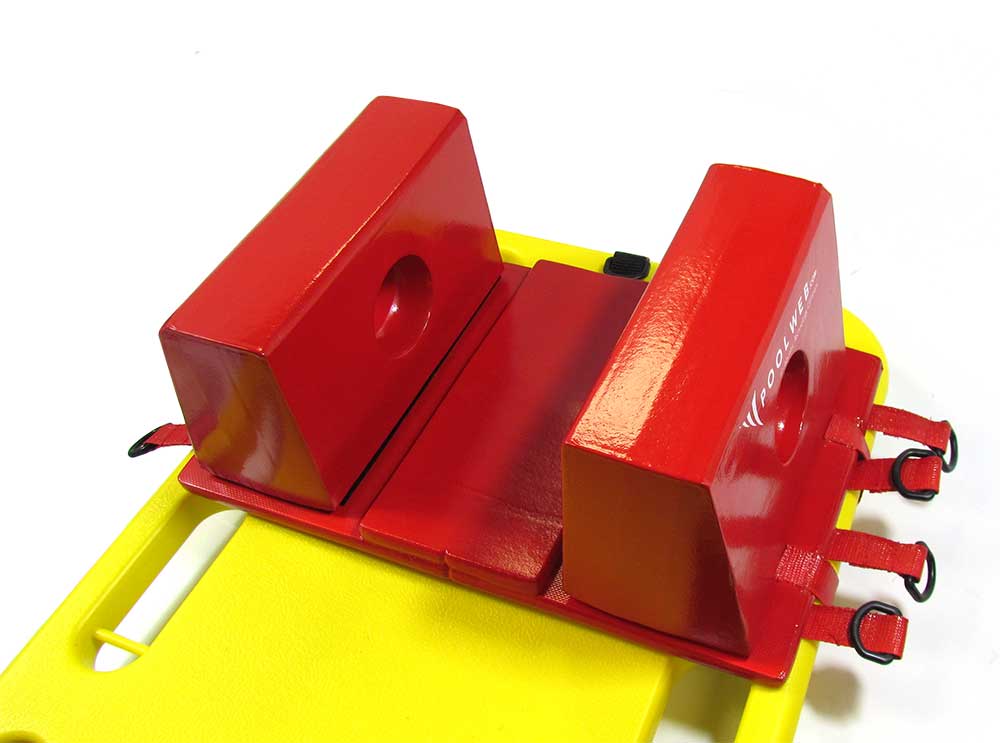 This red all-purpose Head Immobilizer features two side blocks with wide Velcro closures allowing a snug fit. It includes 2 head/chin straps and a base plate that fastens easily to the board. The head and chin straps can be placed alternately to accommodate different needs. Waterproof and buoyant, this head immobilizer can be used in water rescue.