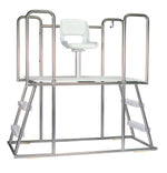 The Hiligard Moveable Guard Station has a 5 foot seat height and features a padded fold-down swivel seat and access from either the right or left side. It has a very large platform measuring 48 x 36 inches. This allows your lifeguards to either seat or stand in multiple positions for optimal viewing and scanning. The platform is even wide enough to have two guards on the platform at the same time.