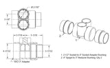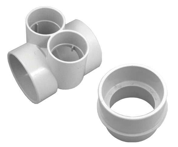 This is an AquaStar 4 inch slip x 4 inch slip x 2-1/2 inch slip horizontal tee with two 4 x 3 inch reducer bushings. This tee has a universal fit for AquaStar skimmer bottoms and "B" dual-port PVC sumps. It converts two 2-1/2 inch spigot to 4 or 3 inch tee.