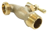 This Ball Valve Hose Bib is constructed of heavy-duty forged brass. This is a low pressure valve with a pressure rating of 200 CWP. It connects using a 3/4 inch pipe thread.