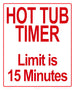 Safety Notification signs are used at aquatic facilities to notify patrons of extra precautions that should be taken or other information related to safety concerns. This Hot Tub Timer sign indicates the location of the timer and time is limited to 15 minutes.