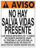 Iowa/Washington No Lifeguard Warning Sign in Spanish (12 Years and Under) - 18 x 24 Inches on Styrene Plastic