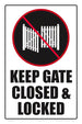 Keep Gate Closed and Locked Sign - 8 x 12 Inches on Styrene Plastic