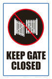Keep Gate Closed Sign - 8 x 12 Inches on Styrene Plastic