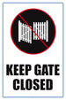 Keep Gate Closed Sign - 12 x 18 Inches on Styrene Plastic