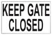 Keep Gate Closed Sign - 18 x 12 Inches on Styrene Plastic