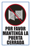 Keep Gate Closed Sign in Spanish - 8 x 12 Inches on Styrene Plastic