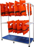 Made from PVC plastic, our durable Large Life Vest Storage Rack will hold approximately 50-60 life vests or jackets. The storage rack is perfect for keeping your life vests in order and allowing them to dry.The storage rack has wheels which keep the unit mobile for moving on and off deck. You can also remove the wheels if you want the storage rack to be more fixed. The color coordinates with our other PVC storage equipment.