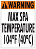Max Spa Temperature Warning Sign - 18 x 24 Inches on Styrene Plastic