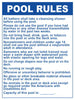 Pool rules signs help ensure the safety of those using and enjoying the pool by establishing clear expectations and guidelines that must be followed. This is critical to prevent accidents, both minor and major. Pool rules signs list the most important rules for swimmers as defined by state, local or federal guidelines. These rules specify proper use of the pool including hygiene, hours of operation, diving rules among others. Most states require posting of pool rules signs at all commercial pools. These signs are essential to limiting liability for pool owners and lifeguards.