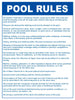 Pool rules signs help ensure the safety of those using and enjoying the pool by establishing clear expectations and guidelines that must be followed. This is critical to prevent accidents, both minor and major. Pool rules signs list the most important rules for swimmers as defined by state, local or federal guidelines. These rules specify proper use of the pool including hygiene, hours of operation, diving rules among others. Most states require posting of pool rules signs at all commercial pools. These signs are essential to limiting liability for pool owners and lifeguards.