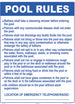 This swimming pool and facility pool sign is designed for harsh swimming pool and outdoor environments. It includes a brass grommet in each corner for easy hanging or mounting. This sign is printed using our high-quality weather and sun resistant inks.