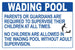 The New Jersey Wading Pool Rules sign is a requirement of New Jersey for aquatic facilities that have wading pools. It is designed according to New Jersey NJAC 8:26 for Wading Pools. Any state with a wading pool and no set rules can use this sign.