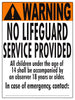 According to your state code, a No Lifeguard sign is required to be posted when there is no lifeguard required. Lettering height on this sign is 3 inch and 1 inch as required by New Mexico code with an age restriction of 14 years and under. This sign also includes custom text of an emergency number.