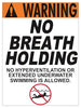 Safety Notification signs are used at aquatic facilities to notify patrons of extra precautions that should be taken or other information related to safety concerns. This Warning No Breath Holding sign is designed to prevent extended underwater swimming and hyperventilation for obvious safety reasons.