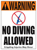 No Diving Allowed Warning Sign (4 Inch Lettering) - 18 x 24 Inches on Styrene Plastic