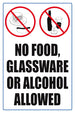 No Food, Glassware or Alcohol Allowed Sign - 12 x 18 Inches on Heavy-Duty Aluminum