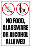 No Food, Glassware or Alcohol Allowed Sign - 12 x 18 Inches on Styrene Plastic