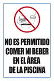 No Food or Beverages Allowed in Pool Area Sign in Spanish - 8 x 12 Inches on Styrene Plastic
