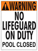 No Lifeguard Pool Closed Warning Sign - 18 x 24 Inches on Styrene Plastic