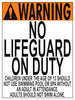 According to your state code and ANSI guidelines, a No Lifeguard sign is required to be posted when there is no lifeguard required. Lettering height on this sign is 4 inch and 1 inch as required by ANSI guidelines. Some states utilize this sign because they want to limit the age to 13 years and under.