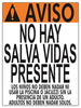 No Lifeguard Warning Sign in Spanish (No Age Limit) - 18 x 24 Inches on Styrene Plastic
