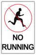 No Running Sign - 12 x 18 Inches on Styrene Plastic
