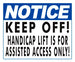 Notice Keep Off Handicap Lift Sign - 12 x 10 Inches on Styrene Plastic