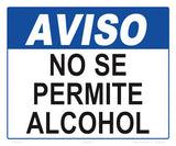 Notice No Alcohol Allowed Sign in Spanish - 12 x 10 Inches on Styrene Plastic