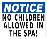 Notice No Children Allowed in Spa Sign - 12 x 10 Inches on Styrene Plastic