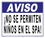 Notice No Children Allowed in Spa Sign in Spanish - 12 x 10 Inches on Styrene Plastic