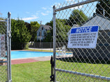 This swimming pool and facility pool sign is designed for harsh swimming pool and outdoor environments. It includes a brass grommet in each corner for easy hanging or mounting. This sign is printed using our high-quality weather and sun resistant inks.