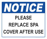 Notice Replace Spa Cover Sign - 12 x 10 Inches on Heavy-Duty Aluminum