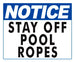 Notice Stay Off Pool Ropes Sign - 12 x 10 Inches on Styrene Plastic