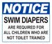 Notice Swim Diapers Required Sign - 12 x 10 Inches on Heavy-Duty Aluminum