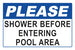 Please Shower Before Entering Pool Area Sign - 12 x 08 Inches on Styrene Plastic $12.64 (Save $4.02)