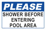 Please Shower Before Entering Pool Area Sign - 12 x 08 Inches on Heavy-Duty Aluminum