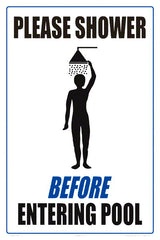 Please Shower Before Entering Pool Sign - 12 x 18 Inches on Heavy-Duty Aluminum